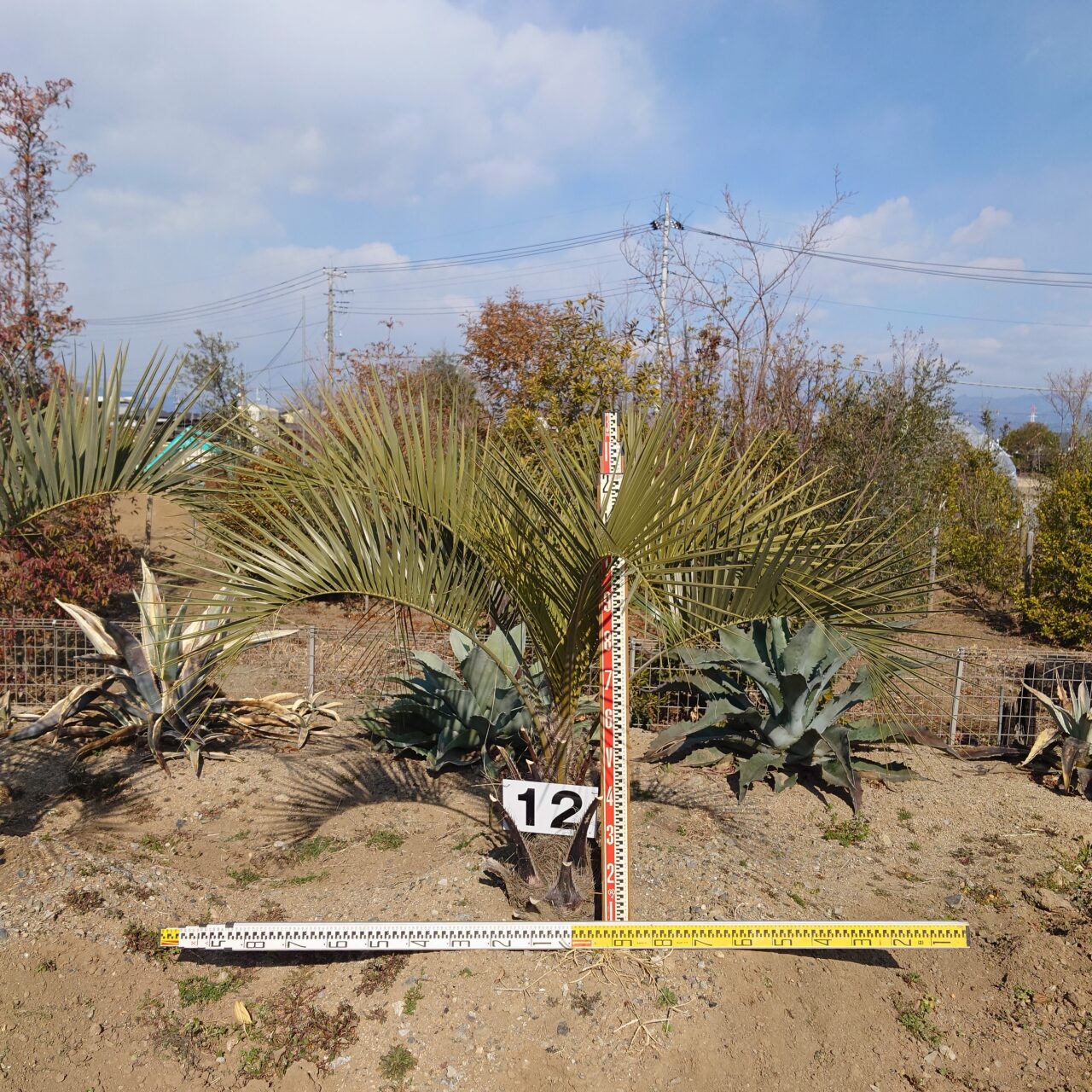 地面から高さ2.0m程度。(根鉢含む)葉の広がり2.5m程度。