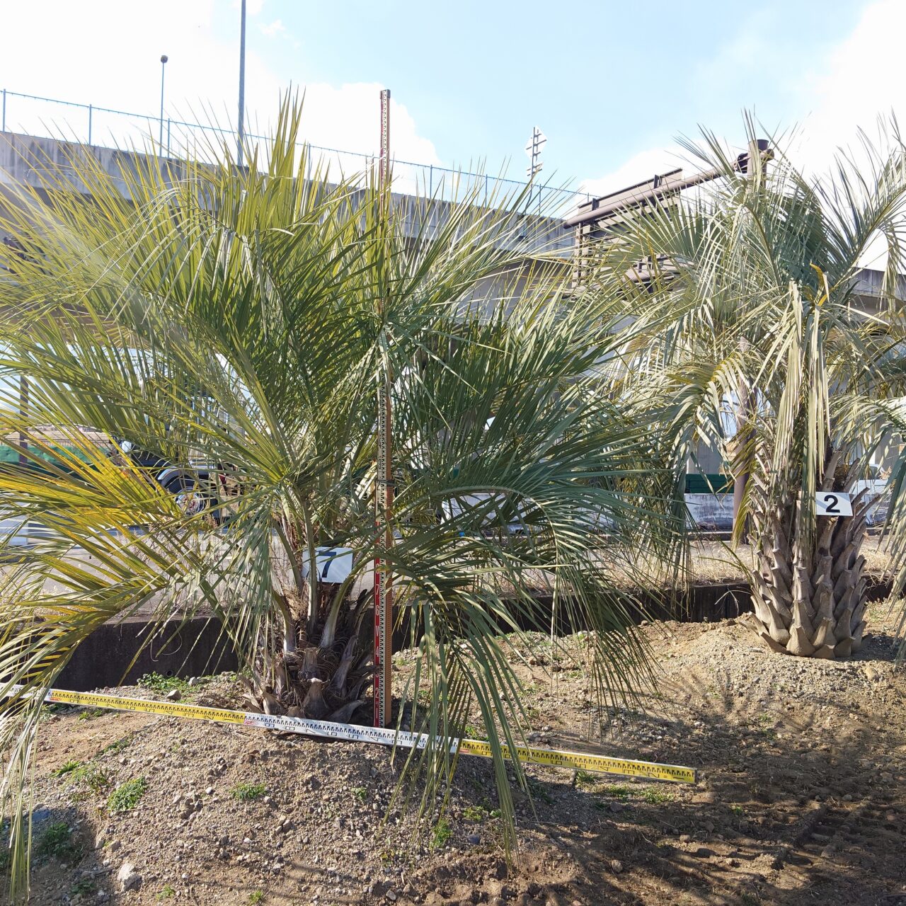 地面から高さ2.5m程度。(根鉢含む)葉の広がり2.8m程度。
