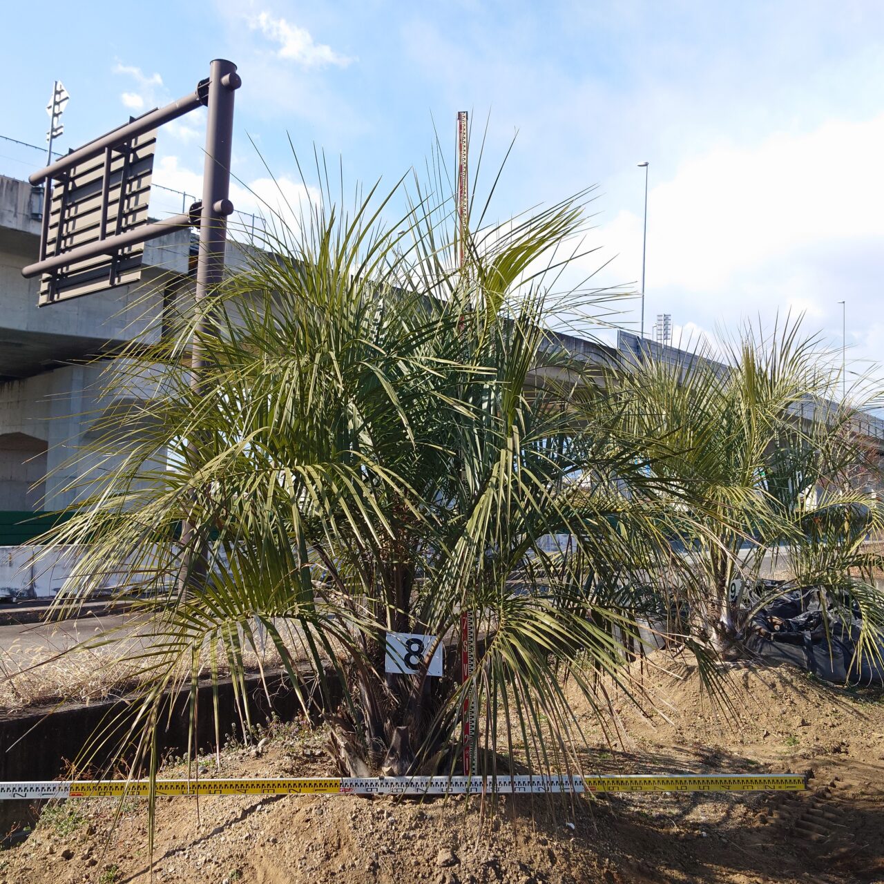地面から高さ2.3m程度。(根鉢含む)葉の広がり2.5m程度。